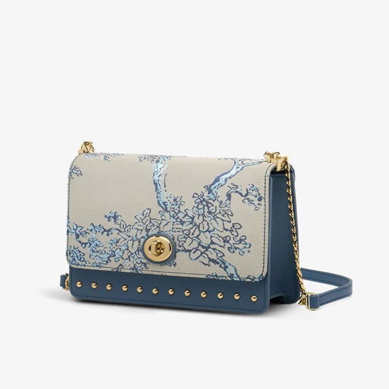 Embroidery Leather Chain Shoulder Bag Sacred Tree Handbag
