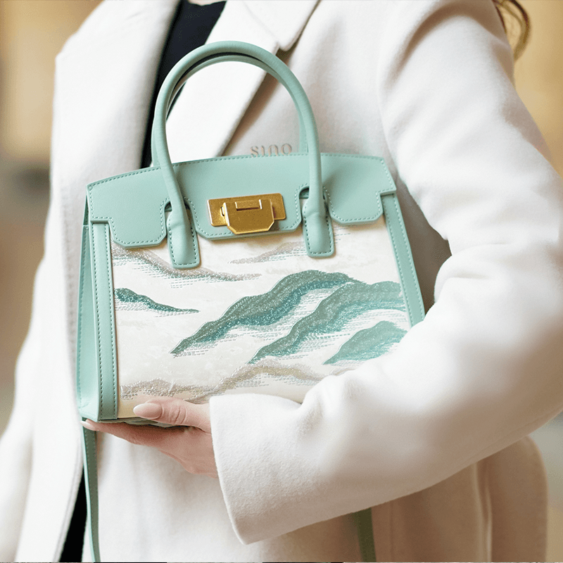 Embroidery Leather Elegant Birkin Handbag Cloud Mountain