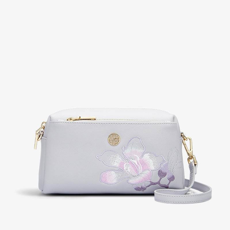 Embroidery Leather Purple Bauhinia Hand Clutch Wallet