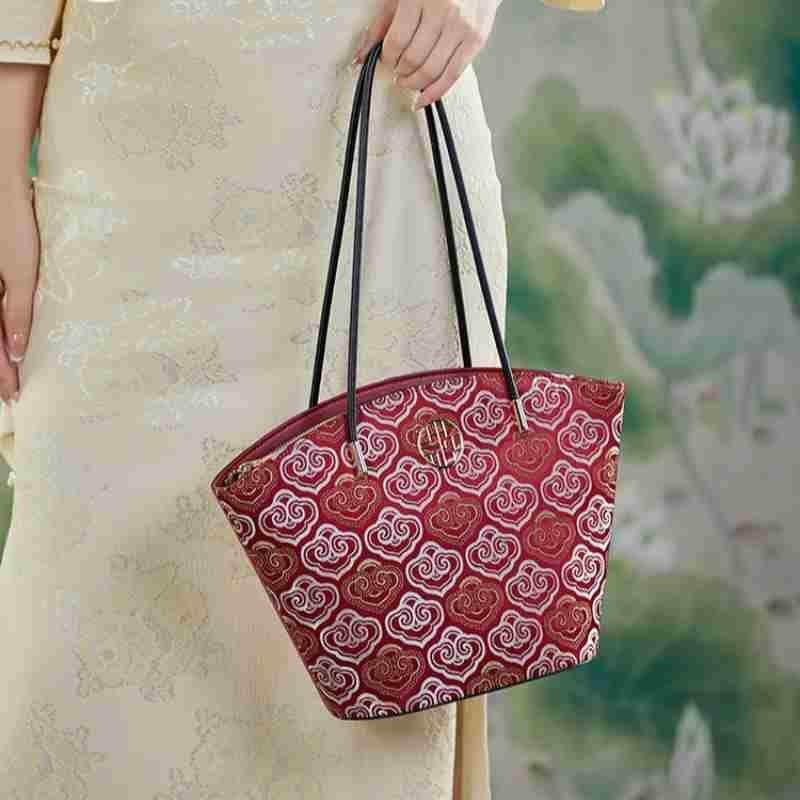 Embroidery Leather Shoulder Tote Bag Cloud Pattern Handbag