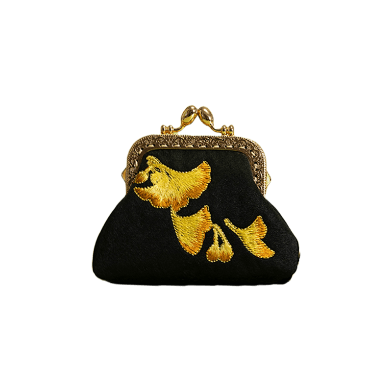 Embroidery Vintage Mini Coin Kiss Lock Purse Wallet