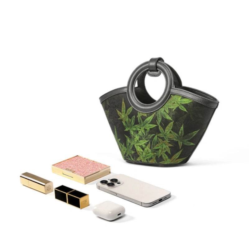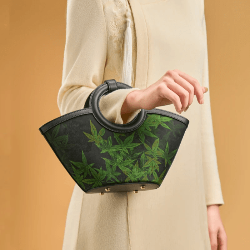Xiangyunsha Silk Black Maple Leaves Basket Bag