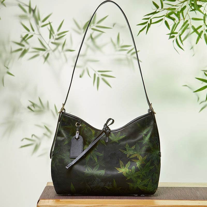Xiangyunsha Silk Large-Capacity Green Tote Bag