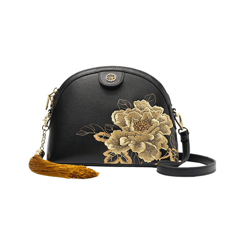 Embroidery Leather Shoulder Bag High Luxury Royal Gold Peony