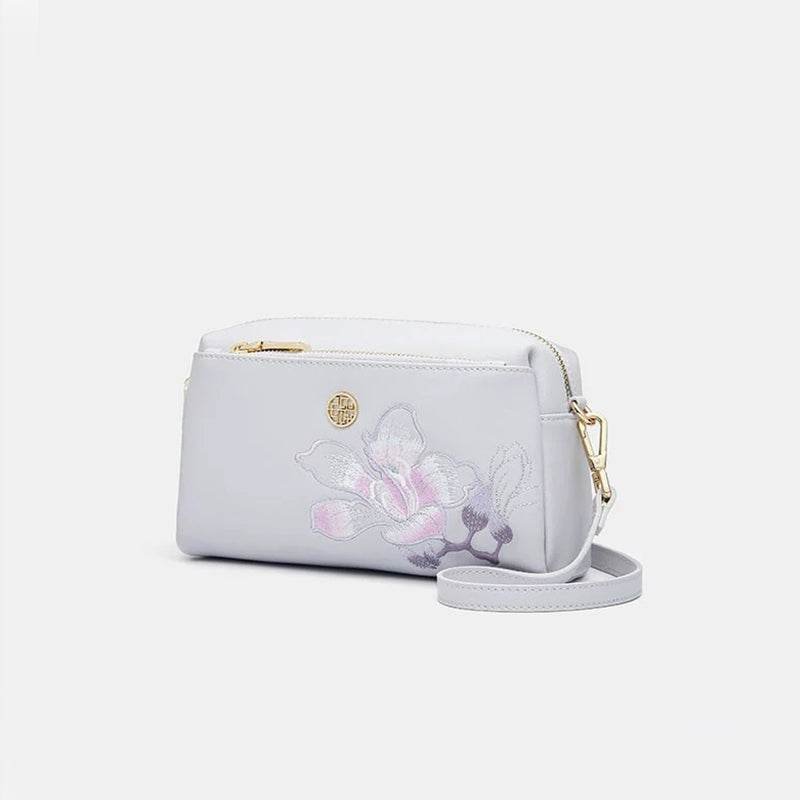 Embroidery Leather Purple Bauhinia Hand Clutch Wallet