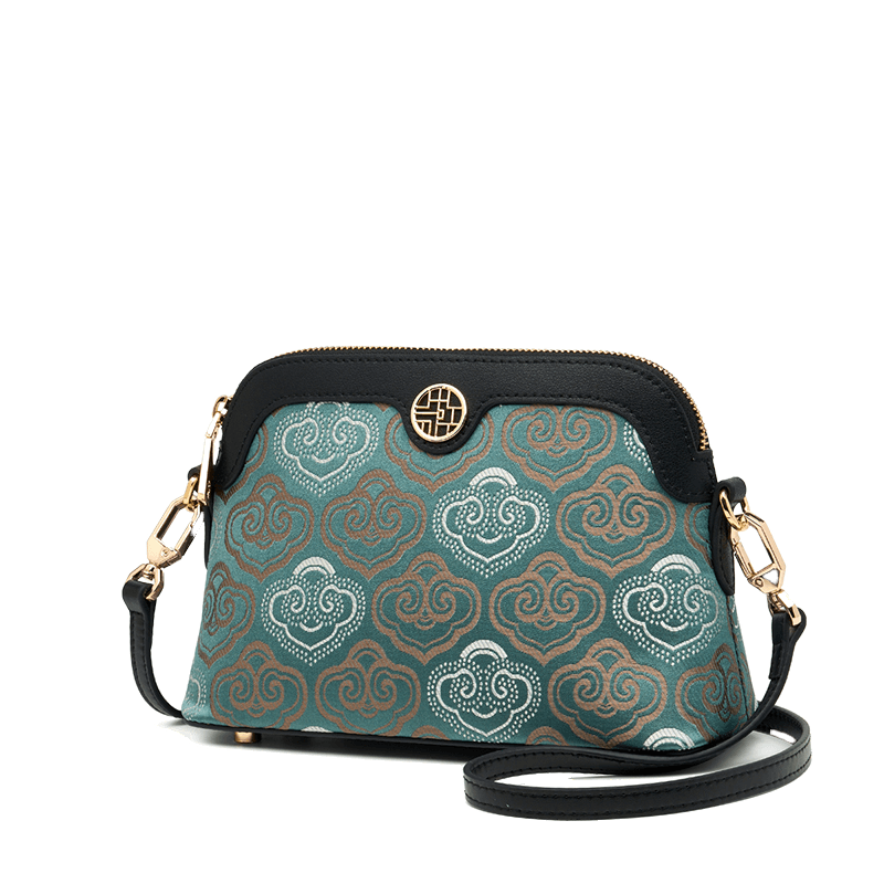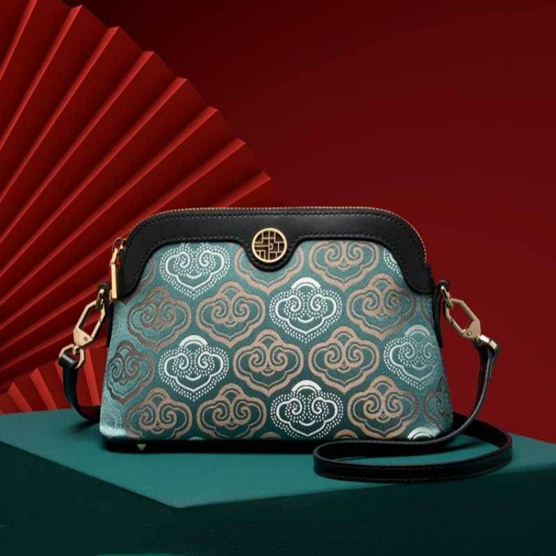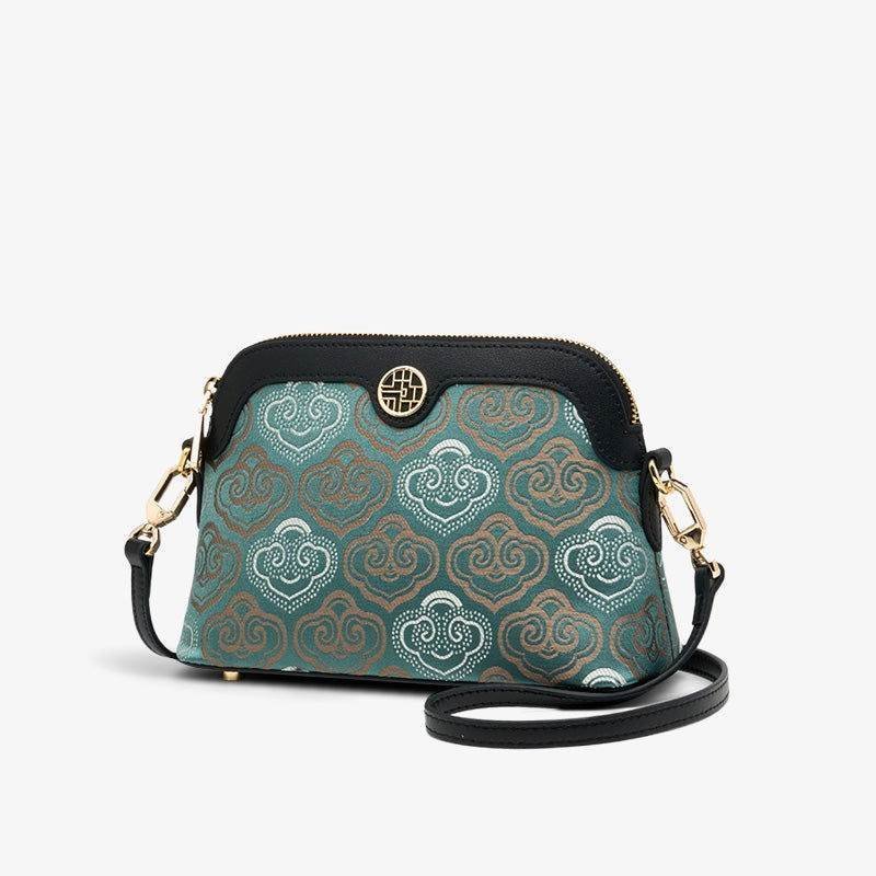 Embroidery Leather Shoulder Shell Bag Auspicious Clouds