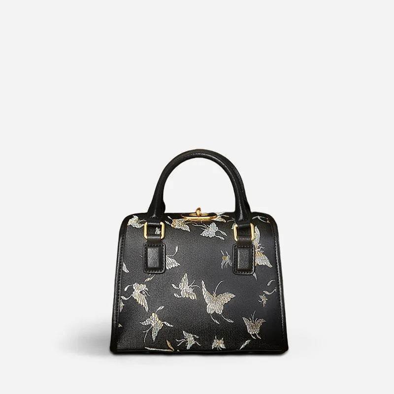 Brocade Boston Black Bag Butterfly Designer Women Handbag