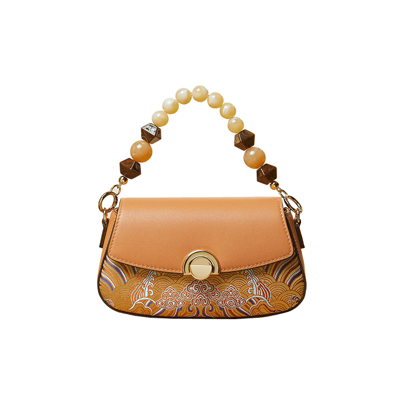 Brocade Mulberry Silk Brown Chain Mini Women Clutch Handbag