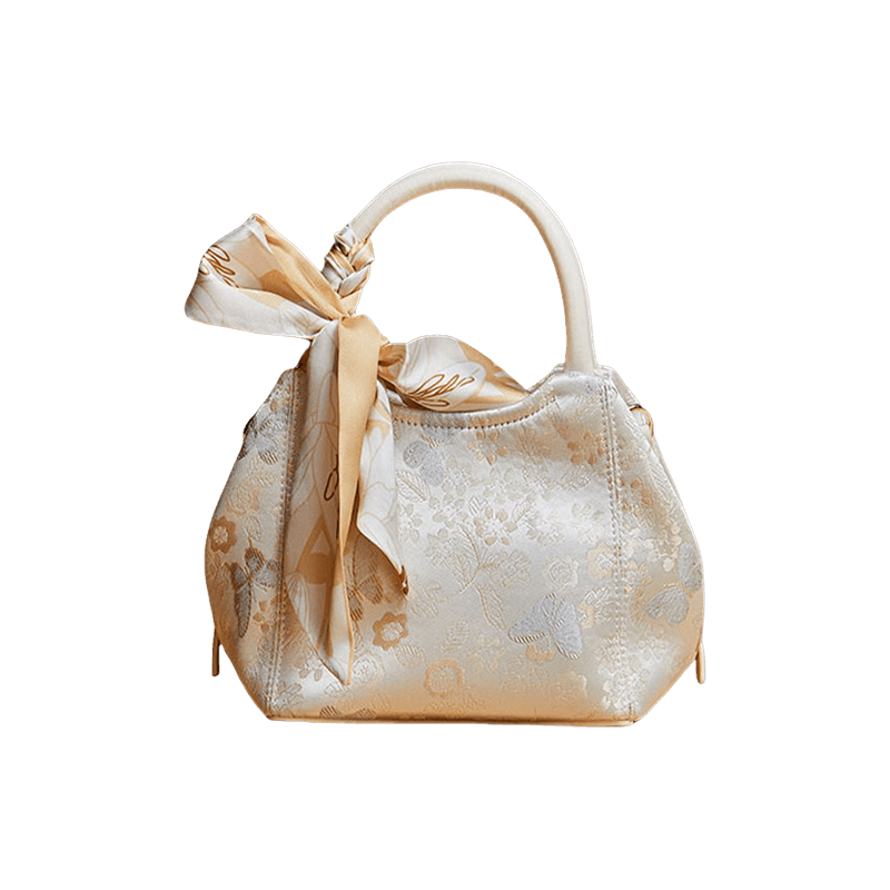 Brocade Silk Pink Butterfly Bucket Bag Designer Handbag
