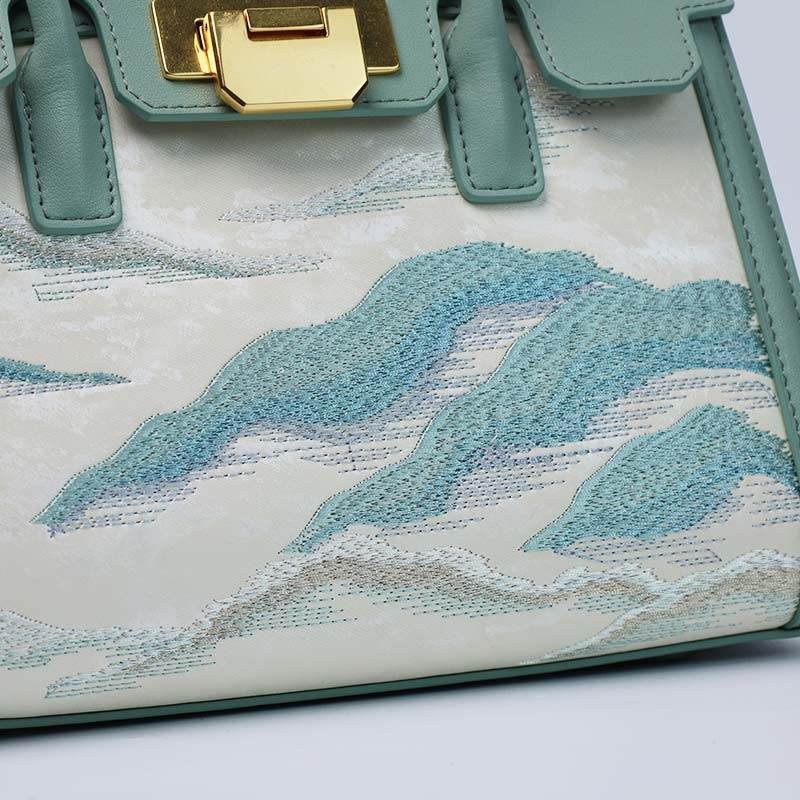 Embroidery Leather Elegant Birkin Handbag Cloud Mountain