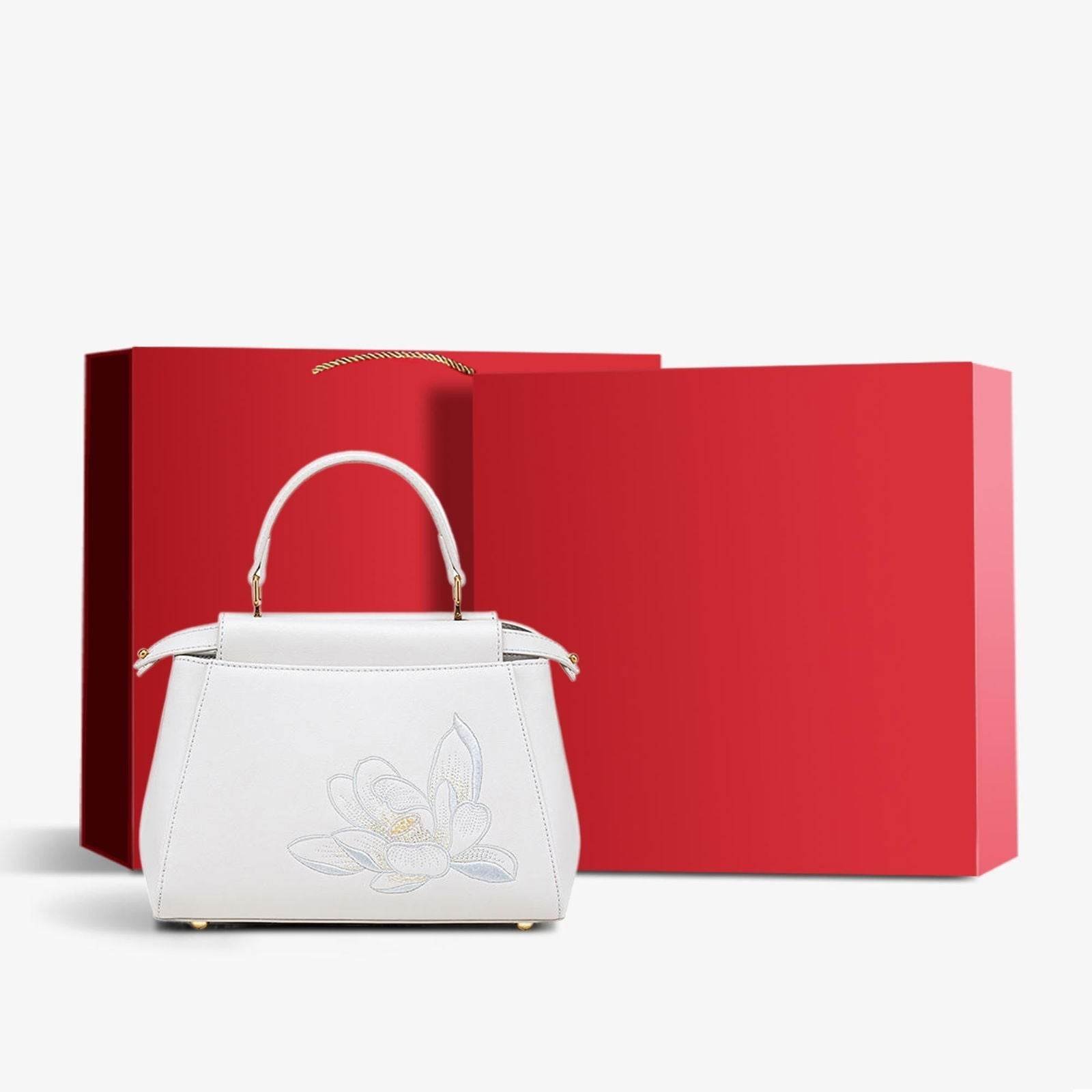 Embroidery Leather Mini Bag Black Lotus Handbag