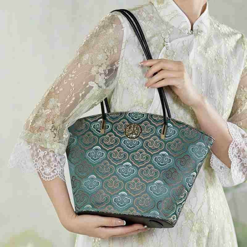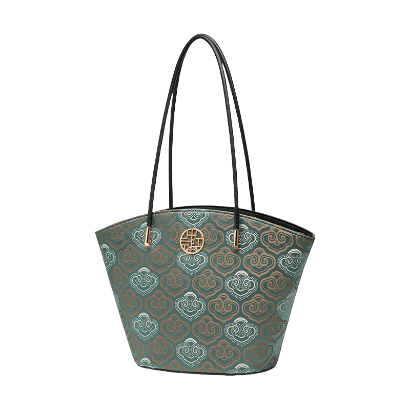 Embroidery Leather Shoulder Tote Bag Cloud Pattern Handbag