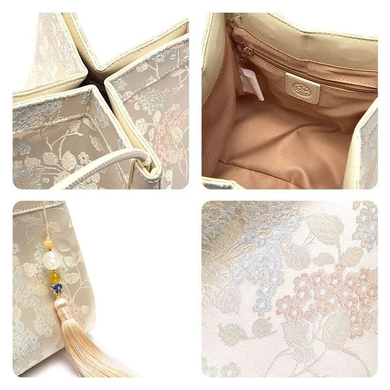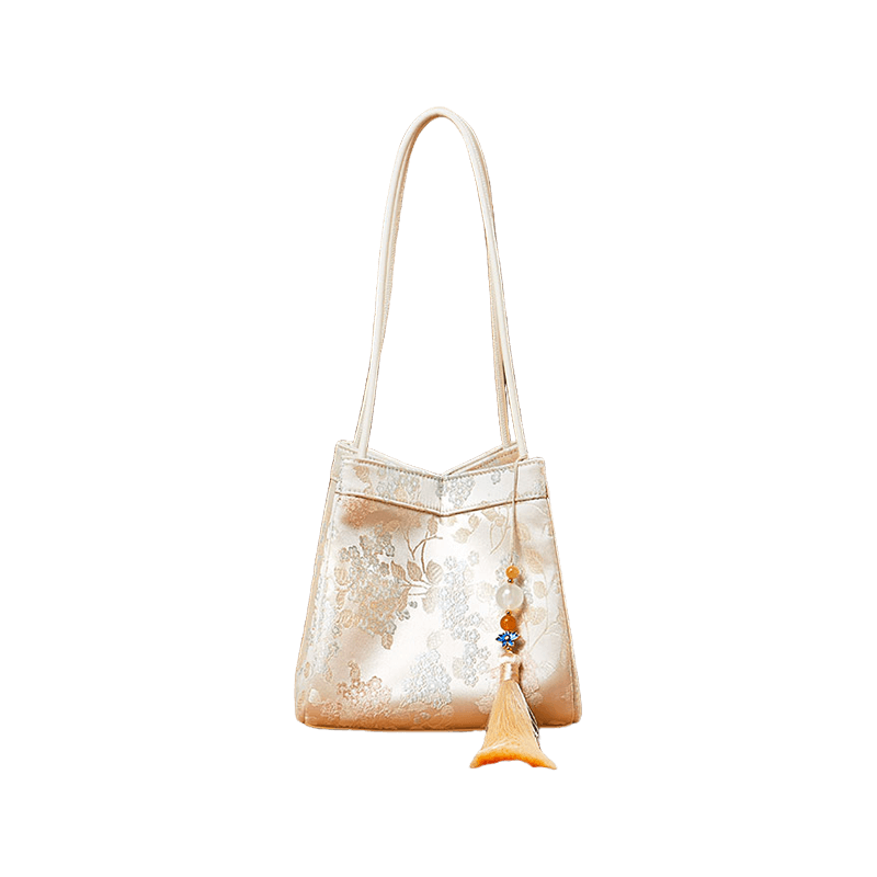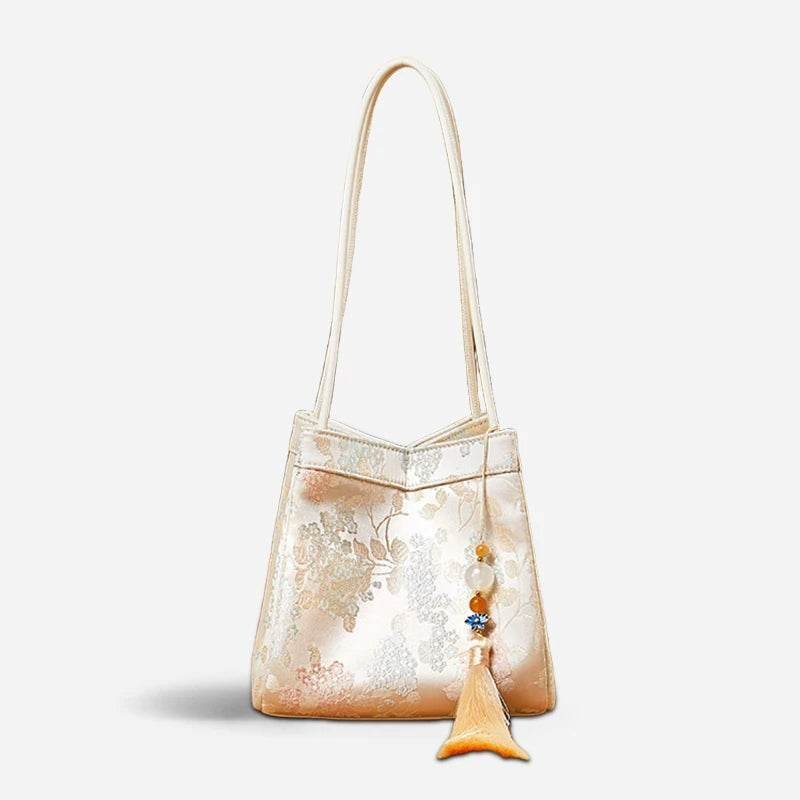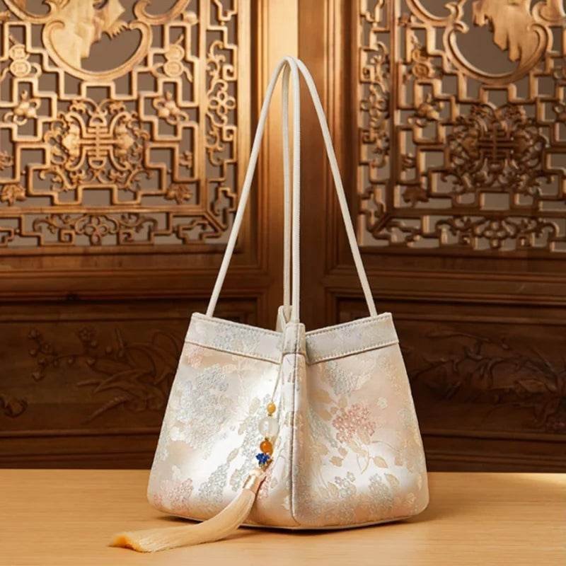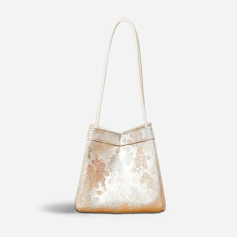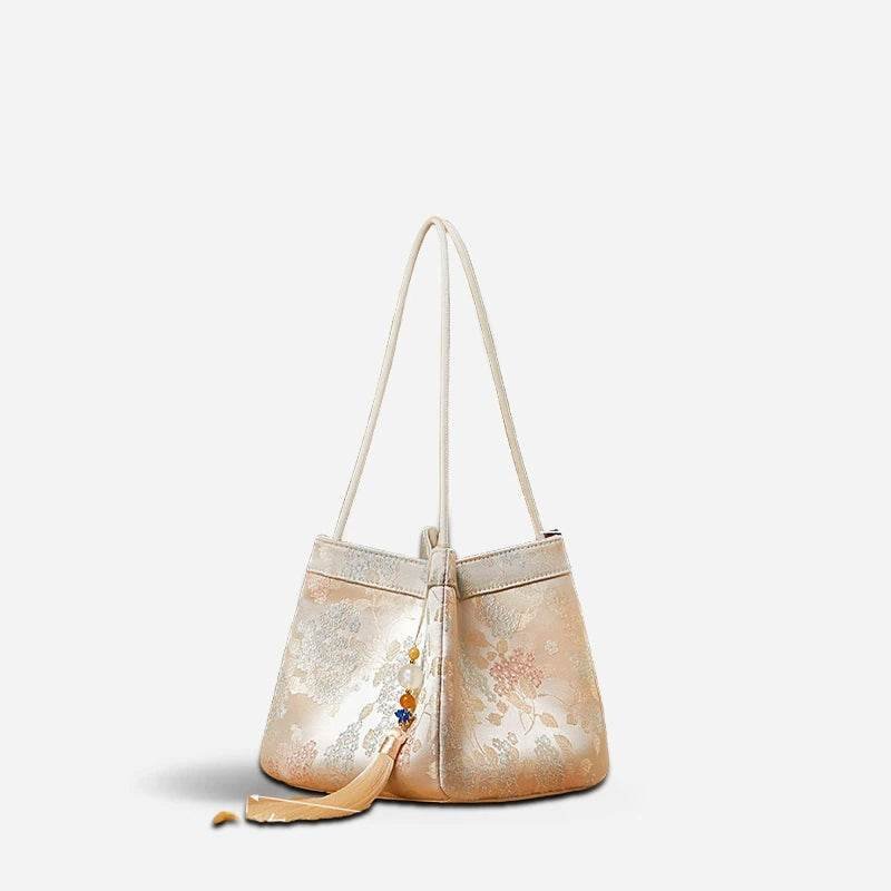 Jacquard Brocade Beige Bucket Handbag Floral New Chinese Style