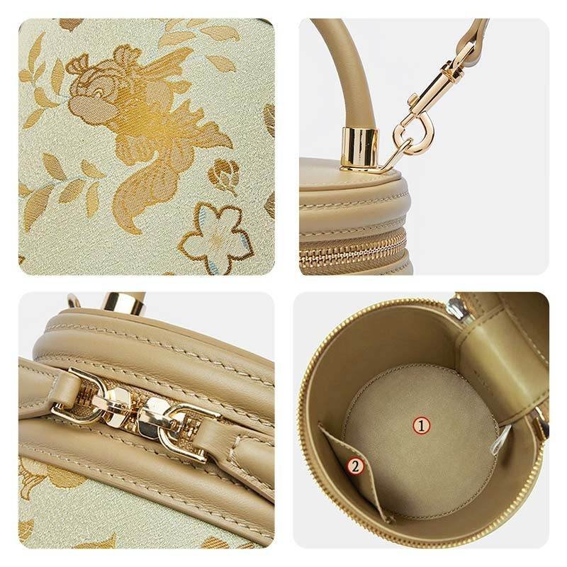 Song Brocade Leather Bucket Cylinder Bag