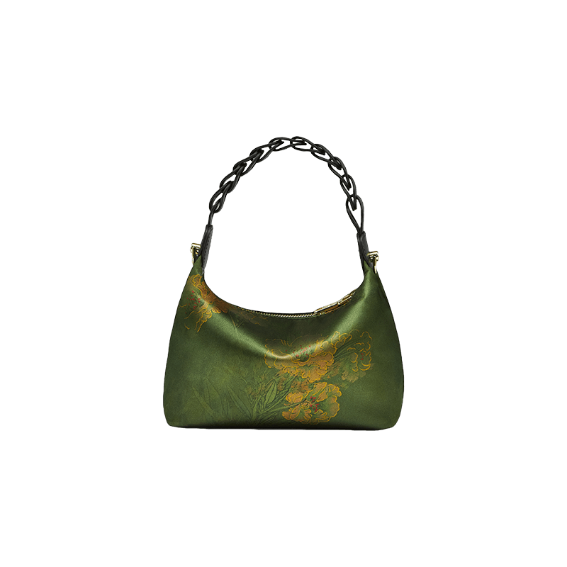 Xiangyunsha Silk Dark Green Mulberry Silk Shoulder Bag